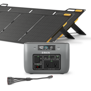 BioLite’s portable solar generator kits and power stations are versatile and powerful, ideal for both outdoor activities and emergencies. Featuring high-capacity lithium-ion batteries, the BaseCharge 600+ and BaseCharge 1500+ can power various devices, from small electronics like phones, earbuds and tablets, to larger appliances like blenders and refrigerators. Pair with our Solar Panel 100 to create a solar power generator and continuous power supply. With multiple outlets, including AC, DC, and USB-C ports, our power stations are designed to meet diverse power needs efficiently.