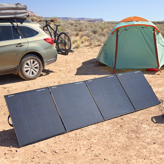 Four 75-Watt panels, totaling 300 Watts, chained together and connected at the hinge. Easily pack and transport the Ranger 300 from place to place, then store it when not in use.