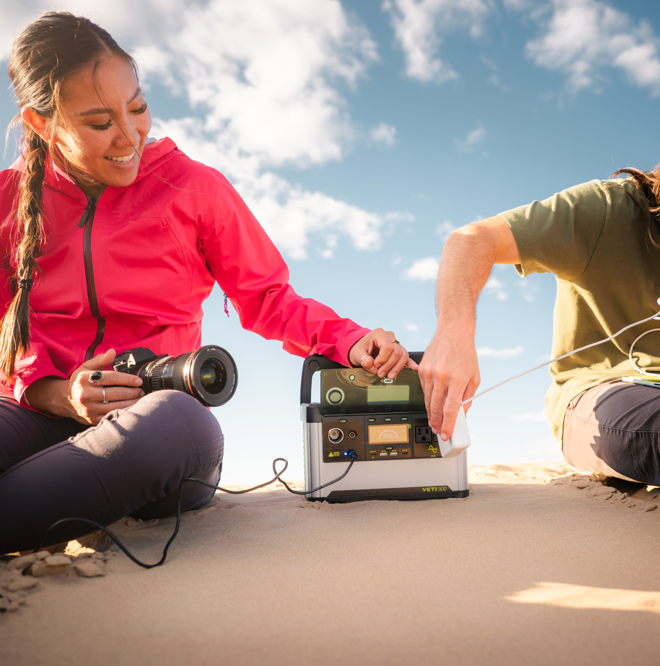 The Yeti 300 was designed for all your adventures and built with portability and durability in mind. It passes testing for particulates and UL2743 requirements. It also has an IPX4 rating for water resistance and can handle extreme temperatures. How extreme? Well, officially you can use it when it’s as cold as -4° F, so we recommend a jacket for yourself and the Yeti. Our Yeti Carrying Cases are tailored for each Yeti and your adventures.